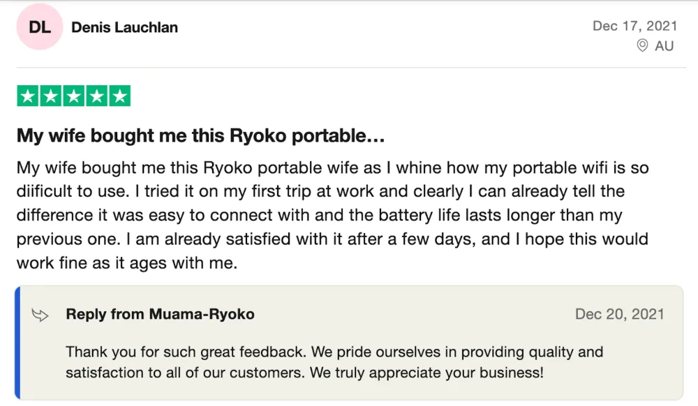 Absolutely looove my ryoko😍😍😍! My cousin lent me hers and I tried it while camping. the connection was consistently fast and reliable; even though it was quite a remote area of the woods. I really liked how portable ryoko is, super light, didn’t take up any space in our backpacks.. battery life also exceeded my expectations, lasted more than 8h. I was even able to enjoy the game on my tablet while fishing with my dad at the lake. Got home and immediately bought one for me and my husband.